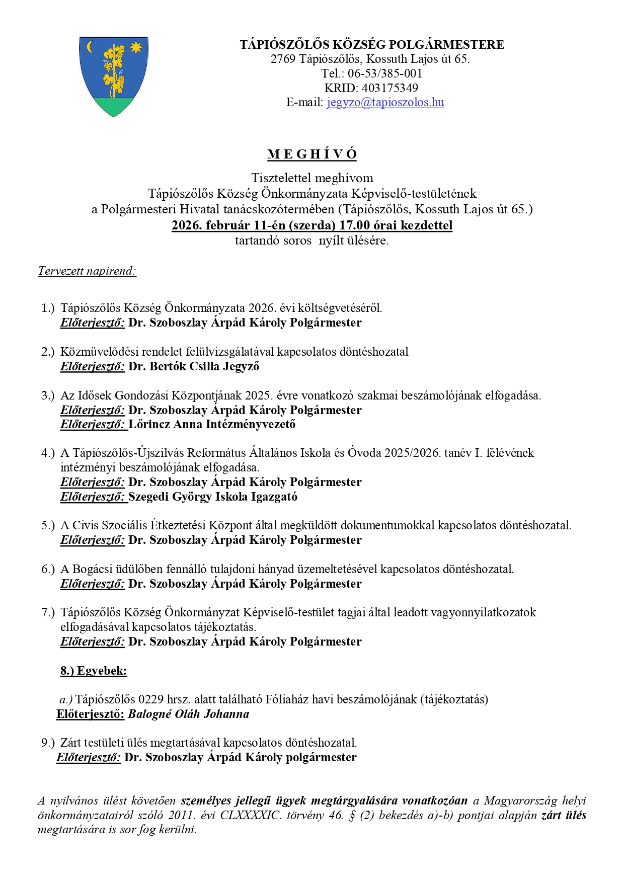 Polgármesteri Hivatal