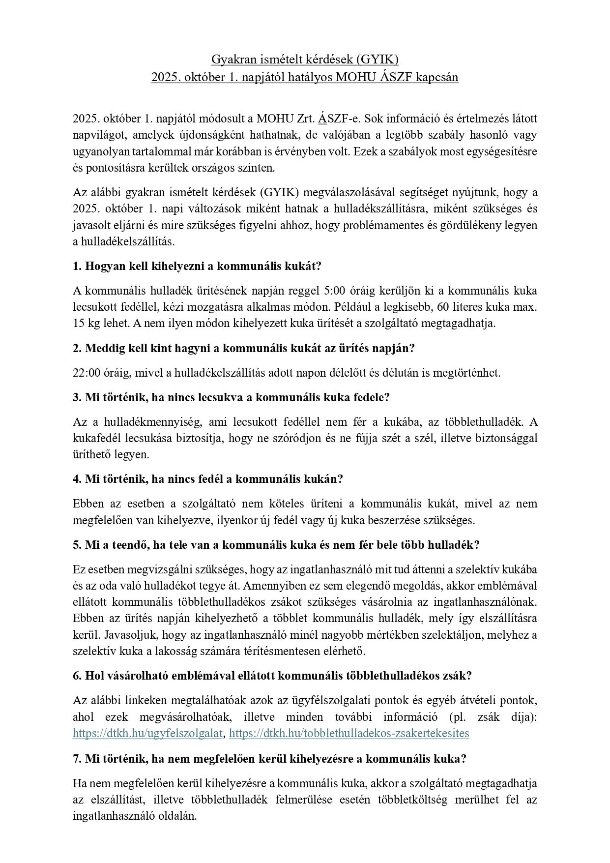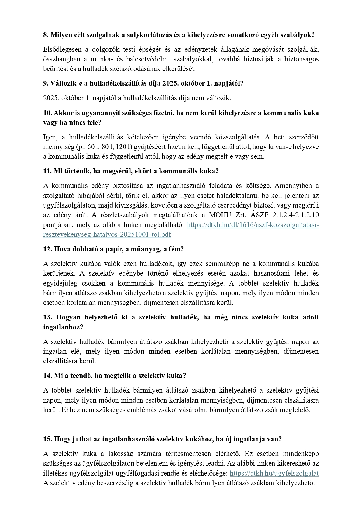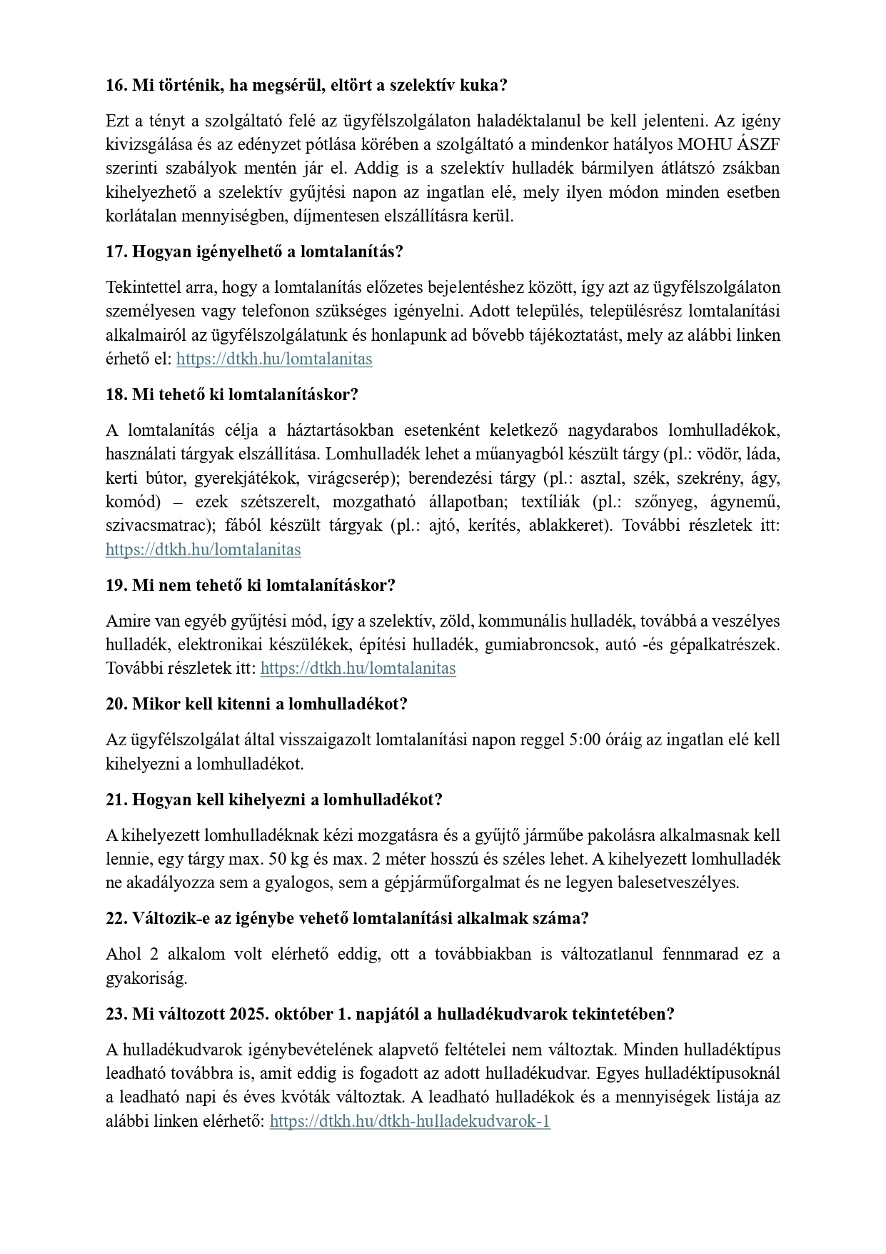- Lakossági tájékoztatás Hulladékszállítással kapcsolatban