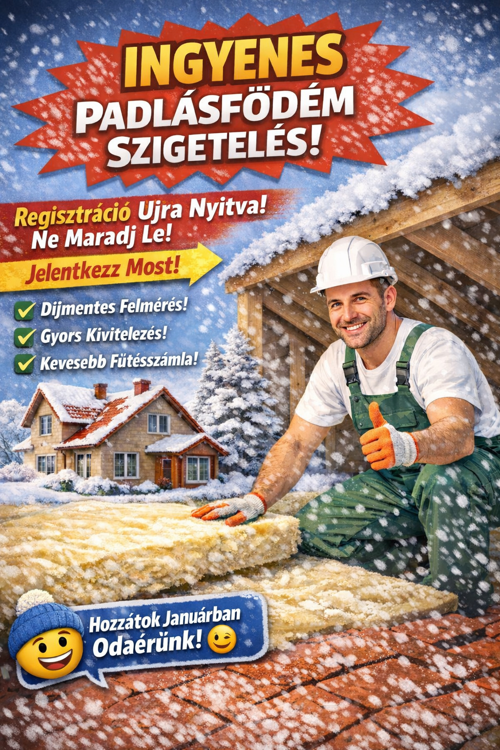 Az ingyenes padlásfödém-szigetelési programunkban a korábbi, 2024/2025-ben regisztrált igényekkel hamarosan végzünk, ezért újra megnyitottuk a regisztrációt az érdeklődők előtt.